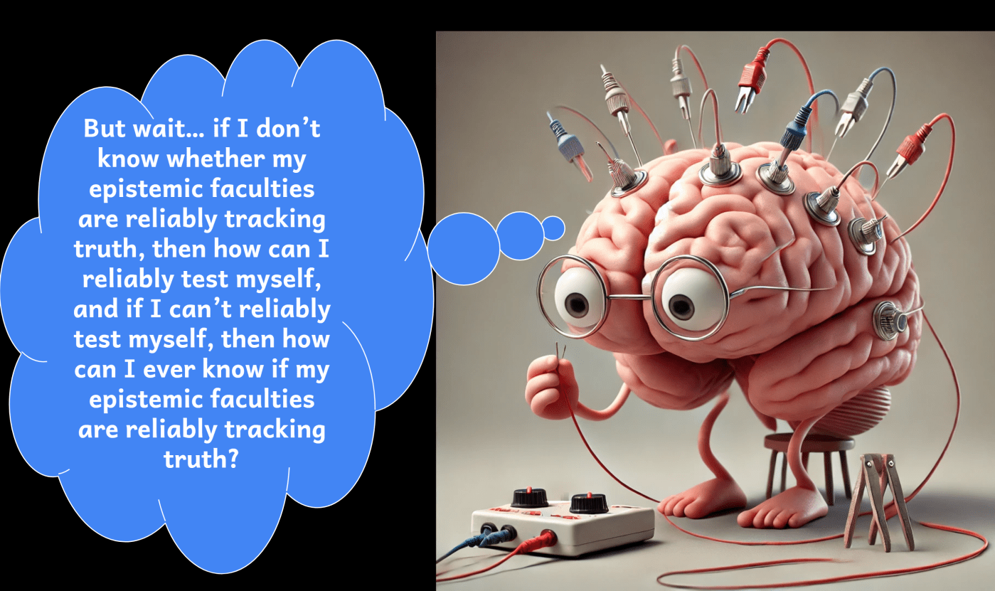 Since we would be using our own faculties to verify their reliability, we encounter a circular problem. If our faculties cannot establish their own reliability, this inability reflects a crucial deficiency, as reliable faculties would necessarily need a self-corrective mechanism to confirm their accuracy. Without this, we are left in a position where any belief in our faculties’ reliability is a matter of chance rather than rational assurance.