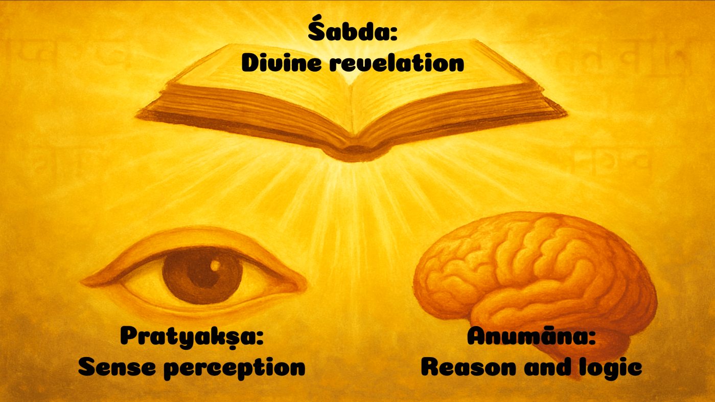 While all three are acknowledged within Vaiṣṇava epistemology, they are not epistemically equal. Śabda holds epistemological primacy, particularly because of the inherent limitations of pratyakṣa and anumāna.