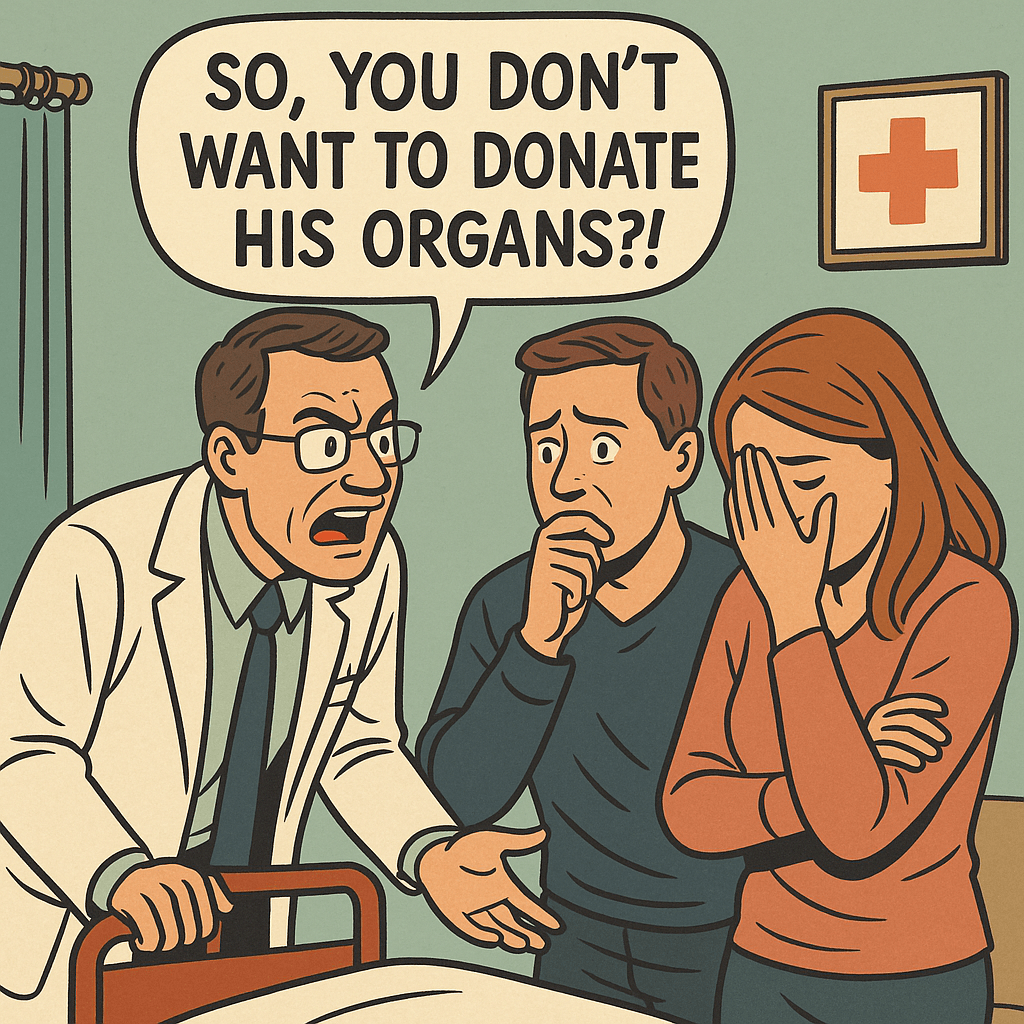 Imagine lying there, unable to open your eyes, unable to speak—while others discuss whether you should live or die, and which of your organs might be taken out and donated.
